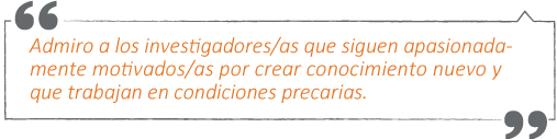 Los investigadores e investigadoras que siguen apasionadamente motivados/as por crear conocimiento nuevo y que trabajan en condiciones precarias.