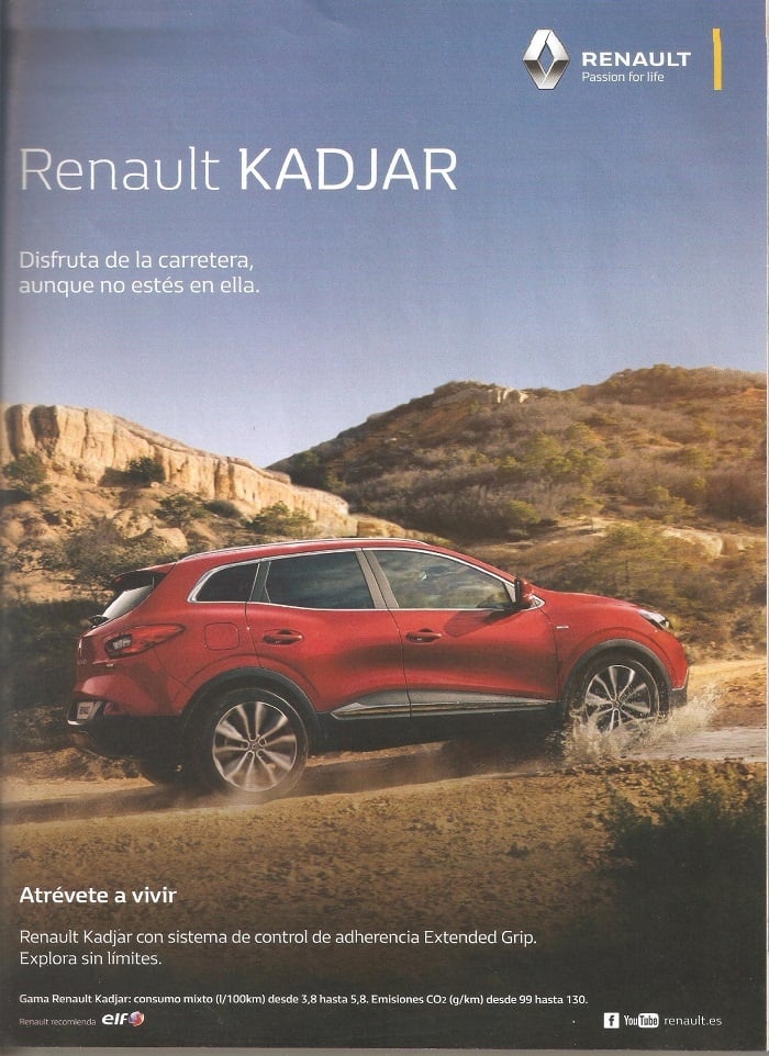 "Disfruta de la carretera, aunque no estés en ella". Ese es el claim. Eso es lo que la publicidad trata de sugerir al consumidor, una sensación, un placer. Si te fijas más, verás que a pie de página aparecen algunas características técnicas del vehículo: son el consumo y las emisiones de CO2, no son ni la potencia, ni el cubicaje ni, por supuesto, el tipo de cárter que utiliza.