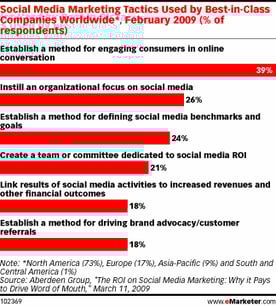 El rápido crecimiento de las redes sociales está haciendo que gran parte de las estrategias de marketing de muchas empresas las estén teniendo cada vez más en cuenta, declara un estudio del grupo Aberdeen titulado "El Retorno de Inversión en el Marketing en Medios Sociales". A pesar de las negativas expectativas causadas por la crisis, según el estudio de Aberdeen, el 63% de las compañías encuestadas definidas como "best-in-class" planeaban incrementar su presupuesto de marketing en redes sociales para este año. Por otro lado, la revista Emarketer estima que la publicidad en redes sociales se incrementará este año en un 17% para pasar a 2.300 millones de $ en 2009.