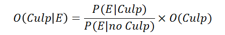- O(Culp) = Probabilidad de que el acusado sea culpable respecto a la probabilidad de que sea inocente, antes de observar ninguna prueba o evidencia.