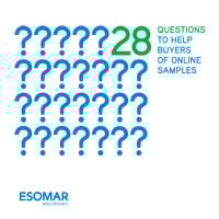 ESOMAR (European Society for Opinion and Marketing Research) es la organización mundial que regula y promueve buenas prácticas en la investigación de mercados, de los consumidores, así como también de las sociedades. Esta organización edita un conjunto de 28 preguntas que todo comprador de muestras online debería hacer a su proveedor. Concretamente, estas preguntas tienen como objetivo “incrementar la transparencia y generar conocimiento acerca de las cuestiones clave que los investigadores han de considerar al decidir si un método de muestreo online es apto para su propósito”4.