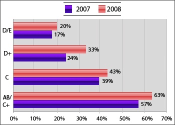 - 64% de los hogares (contemplando todos los NSEs) tienen por lo menos un usuario de internet.