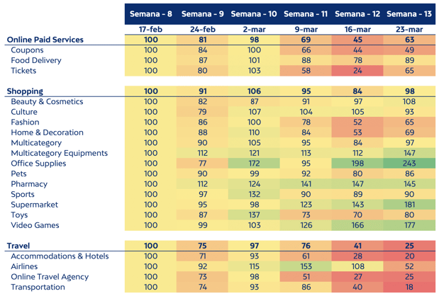 En la siguiente tabla se puede observar el detalle de la evolución para los principales sectores online: