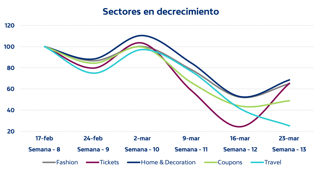 Los sectores que más caída han experimentado son los relacionados con moda, decoración-hogar, cupones, tickets y viajes.