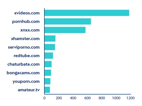 “xvideos.com” es el primer lugar con 1176 visitantes únicas, dejando una larga distancia con el segundo lugar que es “pornhub.com” con apenas 648 y “xnxx.com” con 568 visitantes únicas.