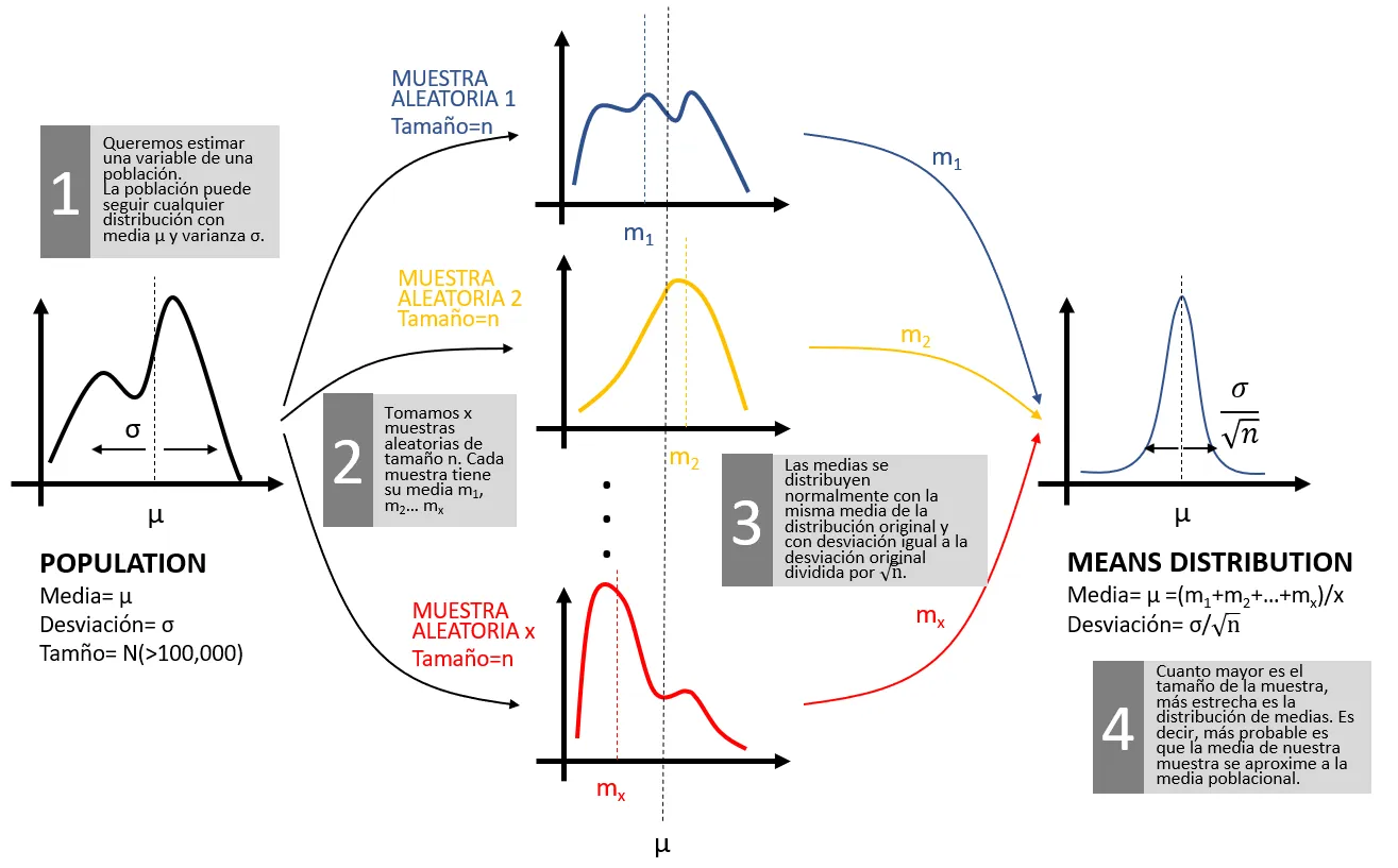 El siguiente esquema te puede ayudar a entender el teorema central del límite.