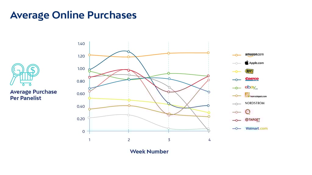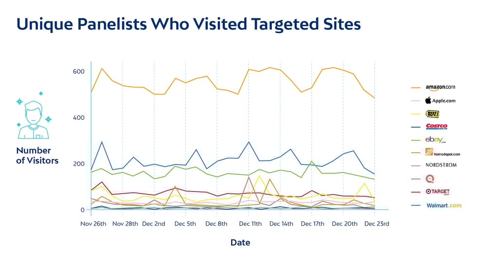 To exemplify this data, we compared the desktop online shopping activity of our US behavioral panelists over the weeks of late November to late December.