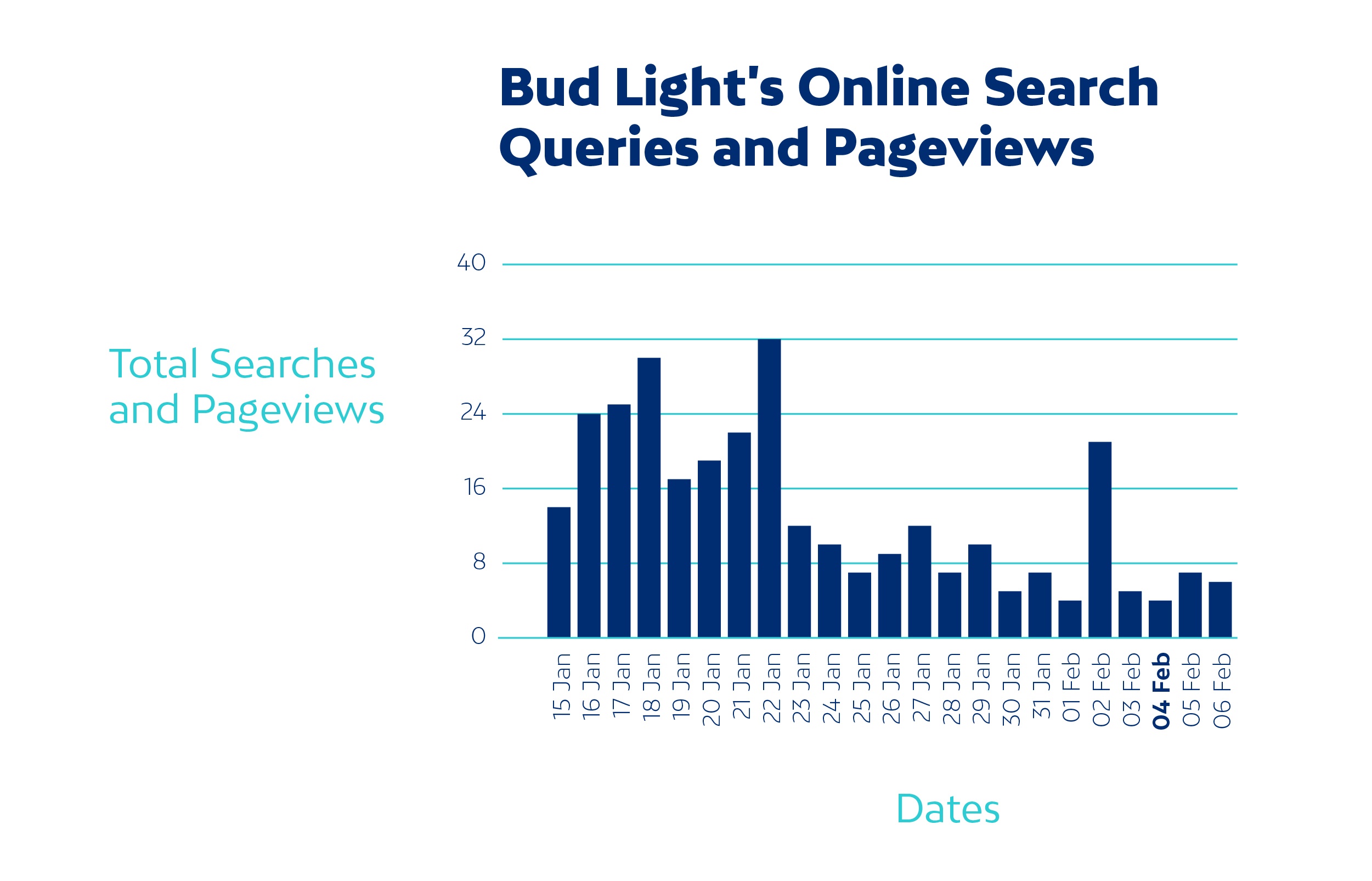 We wanted to see the effect of Super Bowl ads on website traffic and searches of those who purchased Super Bowl ads. Using online behavioral data, we found the biggest spike in searches and pageviews for many companies who purchased Super Bowl commercials were a couple weeks before the Super Bowl. Not during or after the Super Bowl. Why?