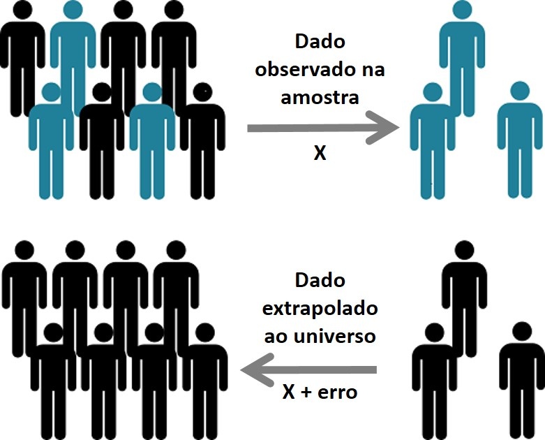 Felizmente, o erro cometido pela generalização de resultados pode ser limitado através de estatísticas. Para isso, usamos dois parâmetros: a margem de erro (diferença máxima entre os dados observados na minha amostra e os dados reais do universo) e o nível de confiança (nível de certeza sobre os dados reais que está dentro da margem de erro).