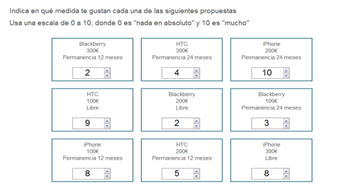 Vejamos um exemplo. Suponhamos que queremos determinar o que um motorista mais valoriza na hora de comprar um carro. Se perguntarmos para ele o nível de importância da segurança, preço e conforto, seguramente nos responderá que todos são importantes. Apenas obteremos informação de suas respostas.