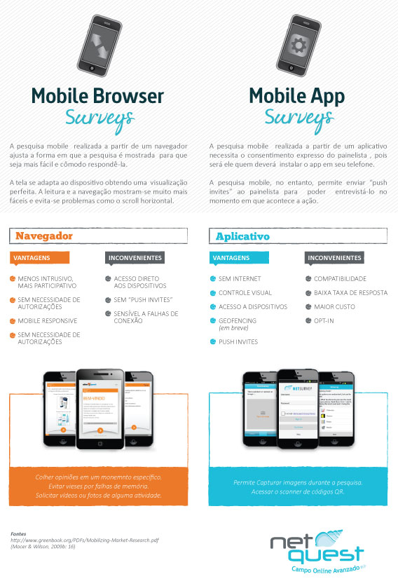 A Netquest, na sua busca por manter-se à frente dos avanços tecnológicos, ou seja, buscando avançar junto com a sociedade, vem, já há algum tempo, trabalhando em desenvolver-se no campo das entrevistas online através de dispositivos móveis. Isso porque vimos que o crescimento médio anual de conexões móveis na América Latina, entre 2007 e 2011, foi de 13% e espera-se que este número siga crescendo por volta de 5% ao ano até 2015 (segundo o GSMA - Observatório Móvel da América Latina). Esse dado mostra uma rápida adoção dos celulares na região, indicando perspectivas excelentes para a região quanto ao emprego de dispositivos móveis em investigação de mercados.