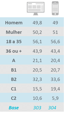 Tamanho da amostra: 600 entrevistas, sendo 300 em cada condição (PC / SM)