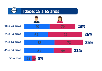 - Detectamos um aumento da desigualdade que já existia entre homens e mulheres, pois 1 de cada 3 mulheres ficou desempregada com a pandemia, enquanto que a taxa de desemprego por gênero foi de 34,9% para mulheres e 17,6% para homens.